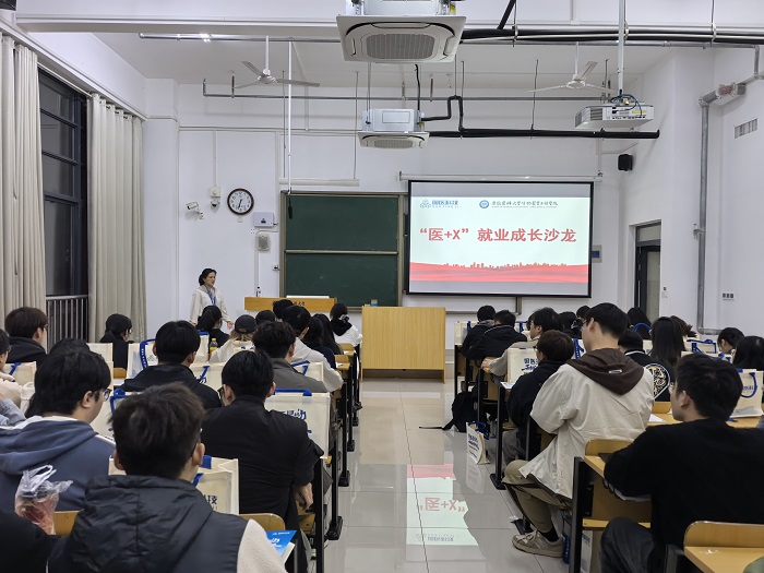 10月21日晚,生物医学工程学院举办“医+X”就业成长沙龙暨2026届毕业生专场招聘,安徽中技国医医疗科技股份有限公司(简称“国医科技”)招聘团队走进校园,以“产业聚才岗位对接职业赋能”为主题,面向学院2026届毕业生开展专场宣讲。
